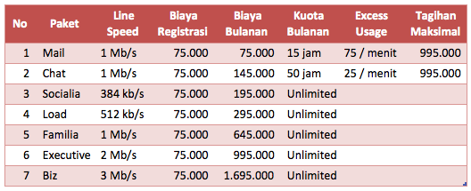 Dengan kecepatan 384 kb/s downstream dan 96 kb/s upstream tanpa batas waktu, Anda dapat berinternet sepuasnya untuk browsing maupun chatting.